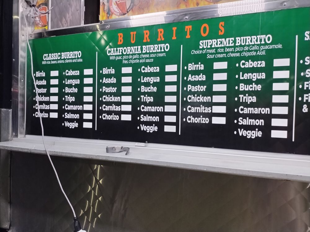 Carne asada, shrimp, guacamole, cheese, rice, beans, lettuce, and chipotle aioli sauce.